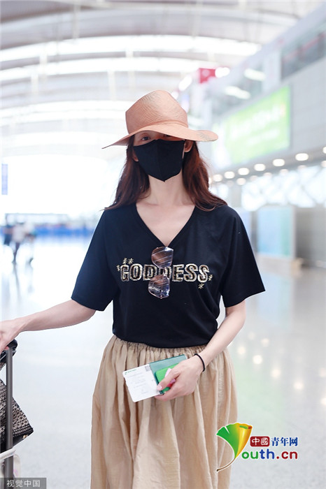 2019年7月23日,上海,林志玲現(xiàn)身機場,穿著打扮與三天前在臺北機場相比毫無變化,依舊身穿黑體恤搭配米色休閑褲,墨鏡也依舊掛在胸前。