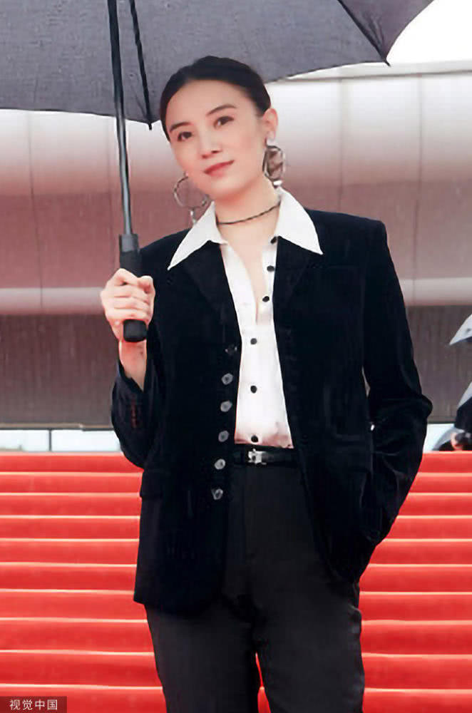 姚晨穿拖尾紅裙亮眼吸睛,獨自撐傘走紅毯燦笑明艷動人。圖片來源:視覺中國