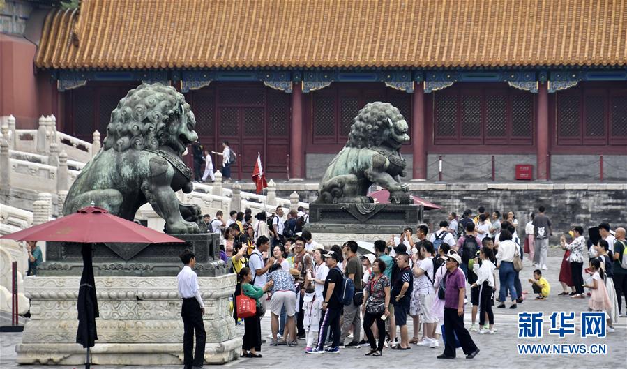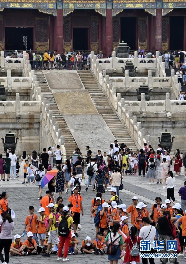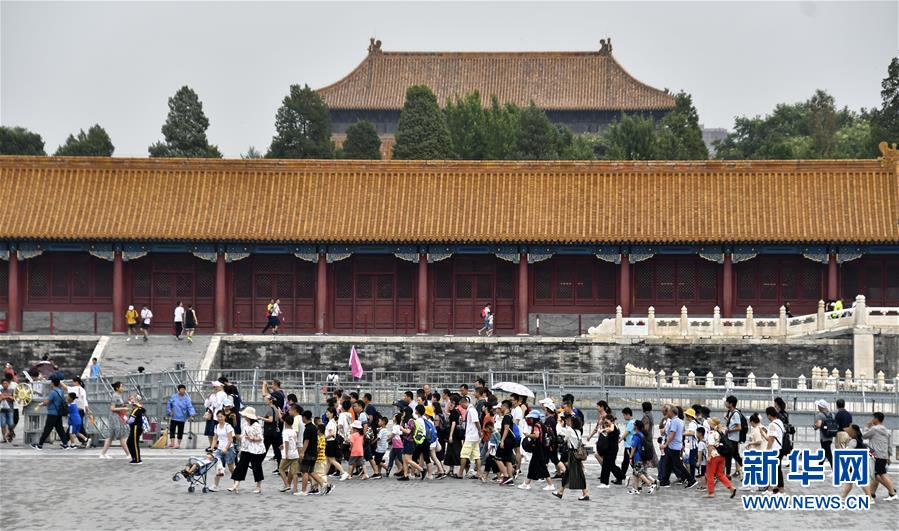 8月3日,游客在故宮參觀。進入暑期以來,北京故宮博物院迎來游覽高峰。故宮博物院采取每日游客限流、熱點景區(qū)導(dǎo)流、供水和醫(yī)療保障等措施,確保游客安全。新華社記者李欣攝