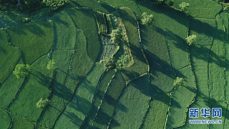 這是8月4日無人機拍攝的安徽黟縣宏村風(fēng)景區(qū)附近的農(nóng)田。新華社記者 張端 攝