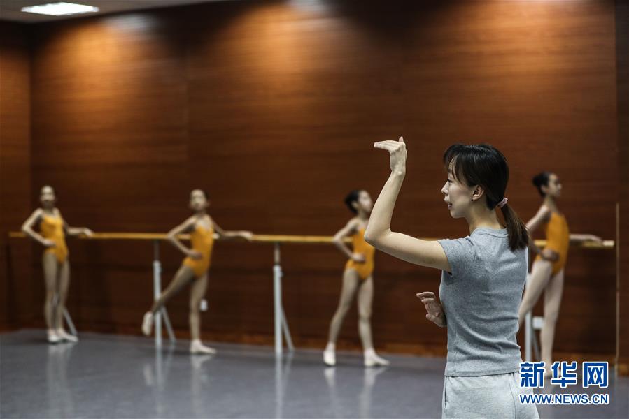 7月9日,遼寧芭蕾舞團(tuán)團(tuán)長曲滋嬌在指導(dǎo)演員進(jìn)行芭蕾舞劇《花木蘭》的排練。新華社記者 潘昱龍 攝
