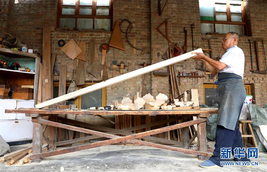 8月7日,在石家莊市井陘礦區(qū)橫西村,韓保元在測(cè)量切割好的木料。 新華社記者駱學(xué)峰攝