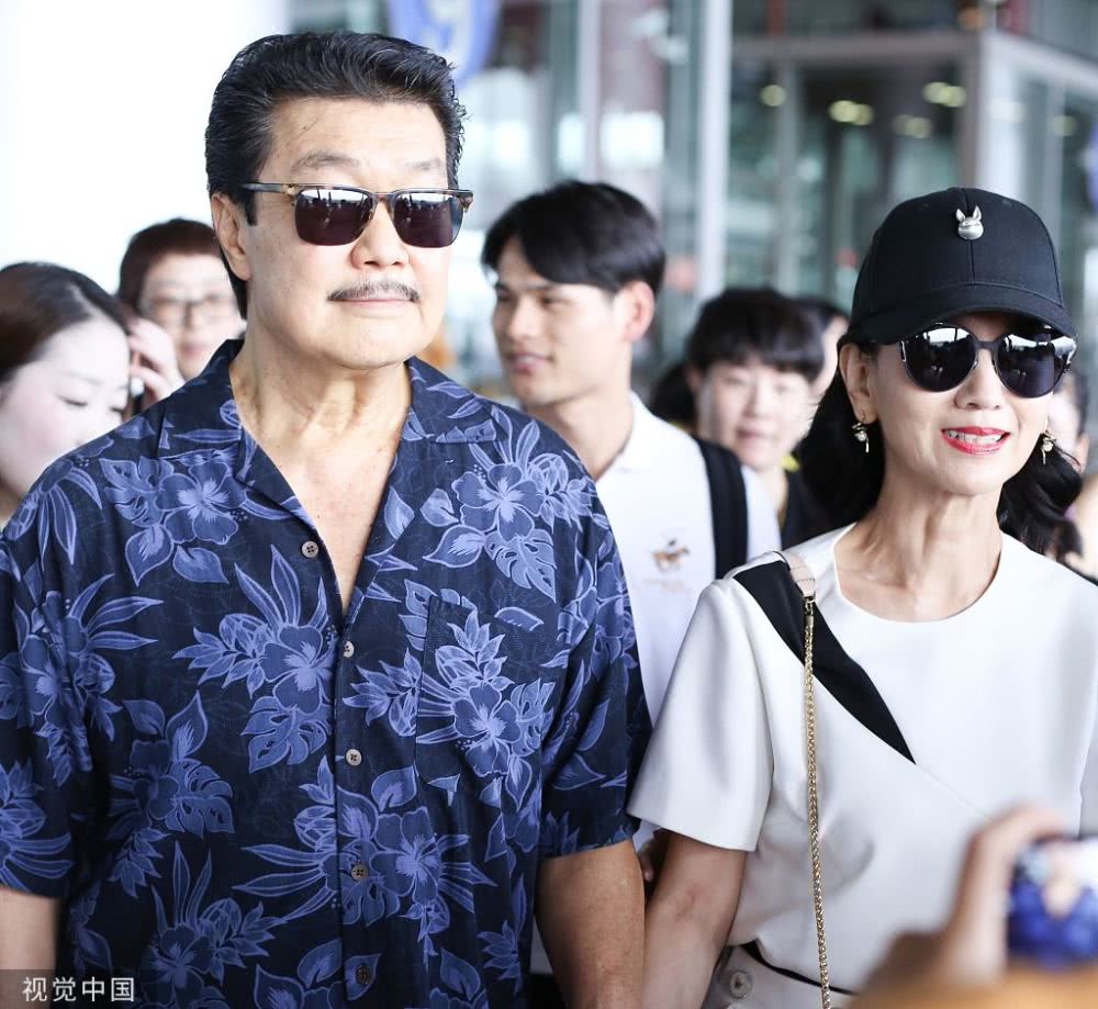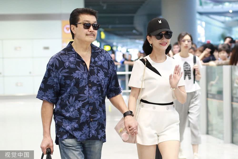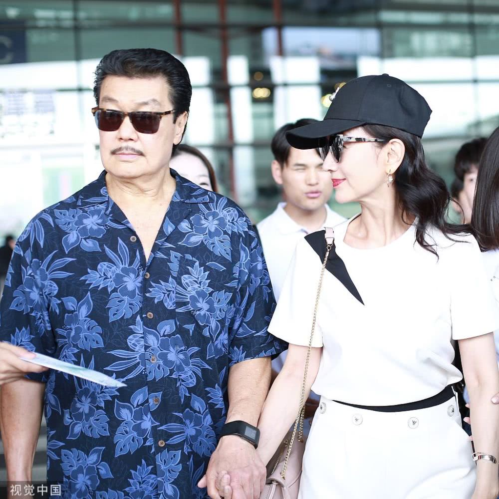 2019年8月10日,北京,趙雅芝與老公黃錦燊現(xiàn)身機(jī)場(chǎng)。