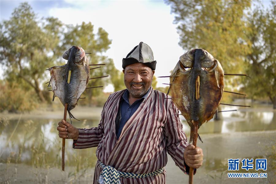 羅布人村寨位于新疆巴音郭楞蒙古自治州尉犁縣,塔里木河從這里流過,沙漠、胡楊、湖泊的奇妙組合吸引了不少游客。生活在這里的羅布人阿木東·艾不東更成為大家關(guān)注的焦點(diǎn)。 阿木東·艾不東61歲,聲音洪亮,面色紅潤,平時(shí)喜歡穿著羅布麻紡織而成的對襟長袍和羊毛氈制成的船形帽子,這是羅布人的傳統(tǒng)裝扮。 如今,許多羅布人不再以打魚為生,他們有的放牧,有的種植,有的開設(shè)店鋪……像阿木東一樣在沙漠中漁獵的羅布人已經(jīng)很少了。 制作羅布人傳統(tǒng)美食——紅柳烤魚是阿木東的拿手絕活。一根紅柳,穿起一條野魚,起一堆炭火,撒少許鹽巴,就可以靜待皮焦肉嫩的紅柳烤魚了。除了傳統(tǒng)口味外,阿木東對羅布烤魚進(jìn)行了改良?!拔颐刂屏艘环N烤魚醬,里面除了辣椒、鹽巴、孜然,還有其他佐料?!碑?dāng)問起具體是哪些配方時(shí),阿木東笑著說:“還有就是塔里木河的味道!” 阿木東是一個(gè)閑不住的人。旅游旺季過后,他會制作卡盆(胡楊制作的獨(dú)木舟)模型、胡楊筆筒等,等旺季來臨再把這些小物件賣出去。 兩千年前,塔里木河與孔雀河載著天山、昆侖山的雪水,把羅布泊充盈得煙波浩渺。羅布人靠羅布泊水域和周圍的濕地及原始胡楊林繁衍生息。后來,塔里木河下游河床被風(fēng)沙淤塞,干旱斷絕了綠色。2001年,塔里木河流域近期綜合治理項(xiàng)目啟動(dòng)。隨著下游河道兩岸地下水位的抬升,相當(dāng)數(shù)量的胡楊從死亡的邊緣“醒來”,重新護(hù)佑這里的綠洲與百姓。 近幾年,阿木東生活的地方基礎(chǔ)設(shè)施大為改善,柏油馬路修到了塔里木河畔。前來領(lǐng)略大漠胡楊的游客也越來越多。據(jù)了解,截至7月底,尉犁縣今年已接待游客78萬人次,旅游總收入超過1.1億元,同比分別增長63.14%和119.42%。 新華社記者 趙戈 攝