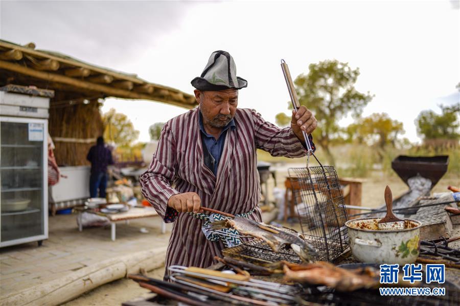 羅布人村寨位于新疆巴音郭楞蒙古自治州尉犁縣,塔里木河從這里流過,沙漠、胡楊、湖泊的奇妙組合吸引了不少游客。生活在這里的羅布人阿木東·艾不東更成為大家關(guān)注的焦點。 阿木東·艾不東61歲,聲音洪亮,面色紅潤,平時喜歡穿著羅布麻紡織而成的對襟長袍和羊毛氈制成的船形帽子,這是羅布人的傳統(tǒng)裝扮。 如今,許多羅布人不再以打魚為生,他們有的放牧,有的種植,有的開設(shè)店鋪……像阿木東一樣在沙漠中漁獵的羅布人已經(jīng)很少了。 制作羅布人傳統(tǒng)美食——紅柳烤魚是阿木東的拿手絕活。一根紅柳,穿起一條野魚,起一堆炭火,撒少許鹽巴,就可以靜待皮焦肉嫩的紅柳烤魚了。除了傳統(tǒng)口味外,阿木東對羅布烤魚進(jìn)行了改良?!拔颐刂屏艘环N烤魚醬,里面除了辣椒、鹽巴、孜然,還有其他佐料。”當(dāng)問起具體是哪些配方時,阿木東笑著說:“還有就是塔里木河的味道!” 阿木東是一個閑不住的人。旅游旺季過后,他會制作卡盆(胡楊制作的獨木舟)模型、胡楊筆筒等,等旺季來臨再把這些小物件賣出去。 兩千年前,塔里木河與孔雀河載著天山、昆侖山的雪水,把羅布泊充盈得煙波浩渺。羅布人靠羅布泊水域和周圍的濕地及原始胡楊林繁衍生息。后來,塔里木河下游河床被風(fēng)沙淤塞,干旱斷絕了綠色。2001年,塔里木河流域近期綜合治理項目啟動。隨著下游河道兩岸地下水位的抬升,相當(dāng)數(shù)量的胡楊從死亡的邊緣“醒來”,重新護(hù)佑這里的綠洲與百姓。 近幾年,阿木東生活的地方基礎(chǔ)設(shè)施大為改善,柏油馬路修到了塔里木河畔。前來領(lǐng)略大漠胡楊的游客也越來越多。據(jù)了解,截至7月底,尉犁縣今年已接待游客78萬人次,旅游總收入超過1.1億元,同比分別增長63.14%和119.42%。 新華社記者 趙戈 攝