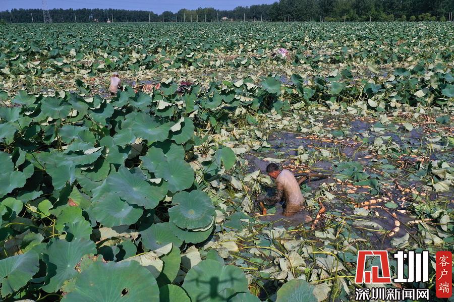 藕農(nóng)們抓緊采藕、清洗、包裝、運(yùn)輸,以供應(yīng)市場。