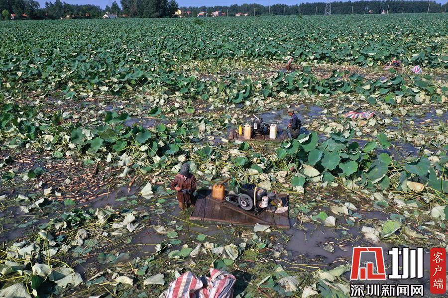 藕農(nóng)們抓緊采藕、清洗、包裝、運輸,以供應市場。