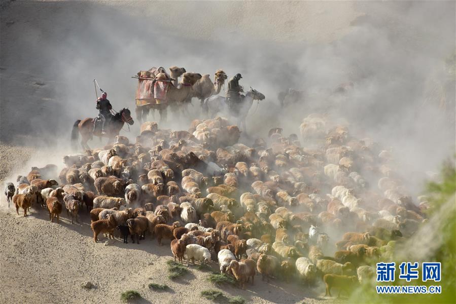 6月6日,新疆阿勒泰地區(qū)福海縣牧民趕著牲畜向夏季牧場遷徙。 新華社記者 丁磊 攝