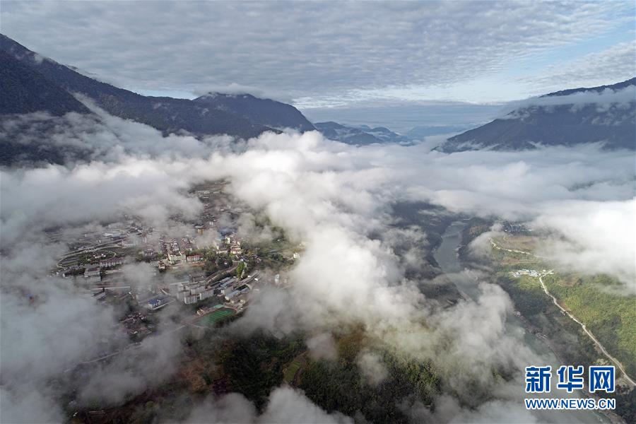 這是云?;\罩的西藏墨脫縣(4月9日無人機拍攝)。新華社記者 李鑫 攝