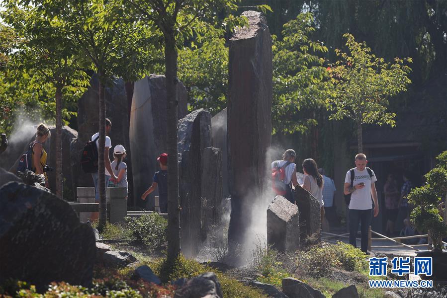 8月24日,在比利時布呂熱萊特市,游客參觀天堂動物園的“中國園”。新華社記者 鄭煥松 攝