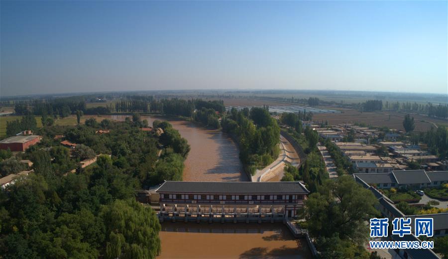 寧夏引黃古灌區(qū)唐正閘。2017年10月寧夏引黃古灌區(qū)入選世界灌溉工程遺產(chǎn),這也是黃河干流上的首個世界灌溉工程遺產(chǎn)(9月1日無人機拍攝)。新華社記者劉詩平攝