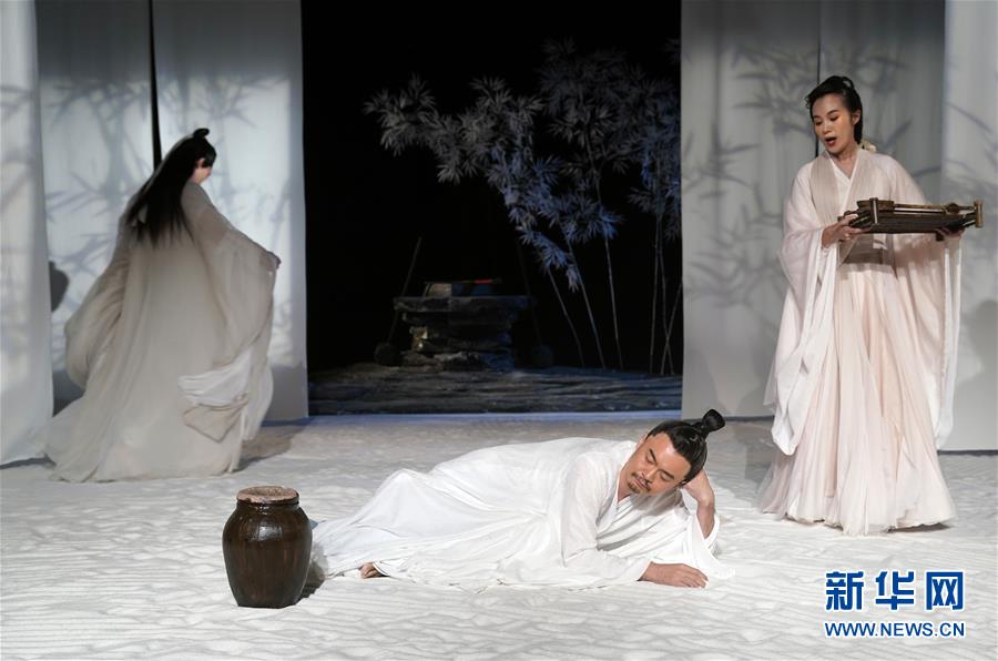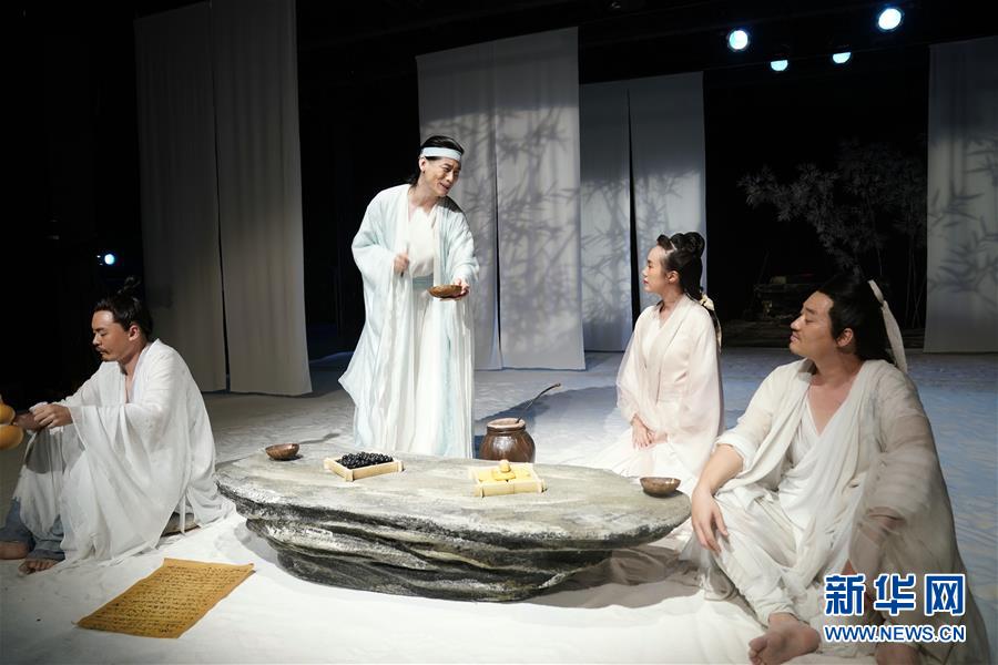 9月16日,演員在話劇《廣陵絕》中表演。 當(dāng)日,話劇《廣陵絕》在北京人藝實(shí)驗(yàn)劇場(chǎng)上演。新華社記者 金良快 攝