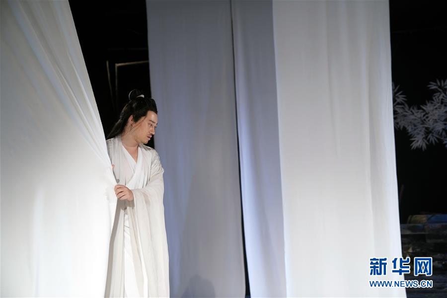 9月16日,演員在話劇《廣陵絕》中表演。 當(dāng)日,話劇《廣陵絕》在北京人藝實(shí)驗(yàn)劇場(chǎng)上演。新華社記者 金良快 攝