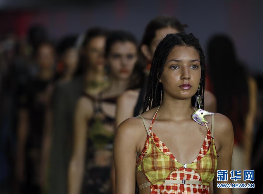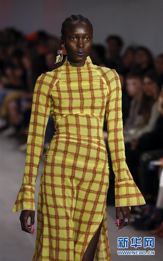 9月17日,在英國(guó)倫敦,模特在2020倫敦春夏時(shí)裝周上展示Charlotte Knowles品牌服飾。  新華社記者 韓巖 攝
