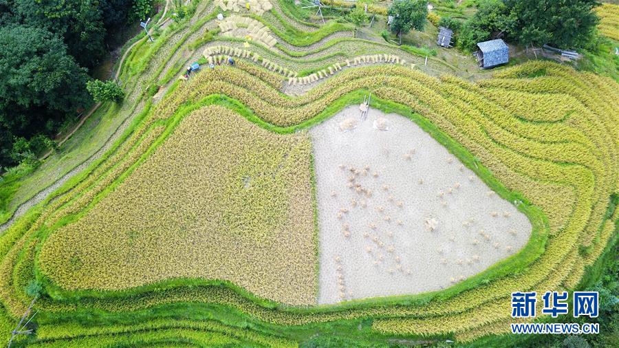 這是9月17日無人機(jī)拍攝的貴州省榕江縣計劃鄉(xiāng)計劃村陽開苗寨梯田。 新華社記者 楊文斌 攝