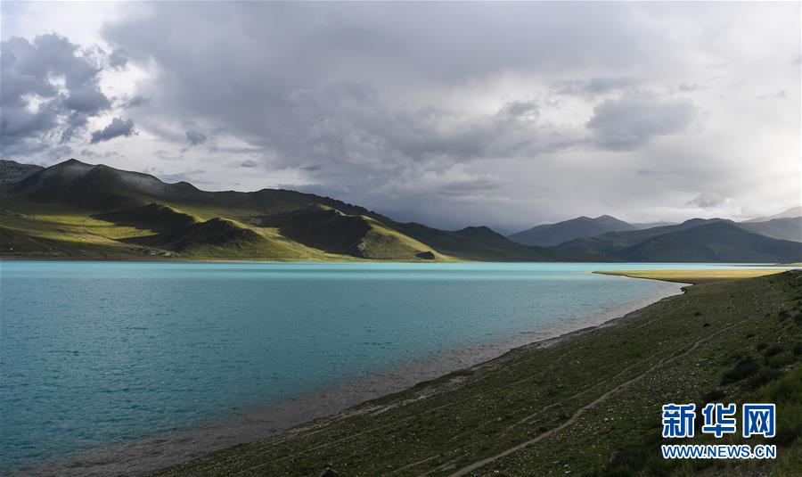 8月31日無(wú)人機(jī)拍攝的羊卓雍錯(cuò)風(fēng)光。新華社記者晉美多吉攝