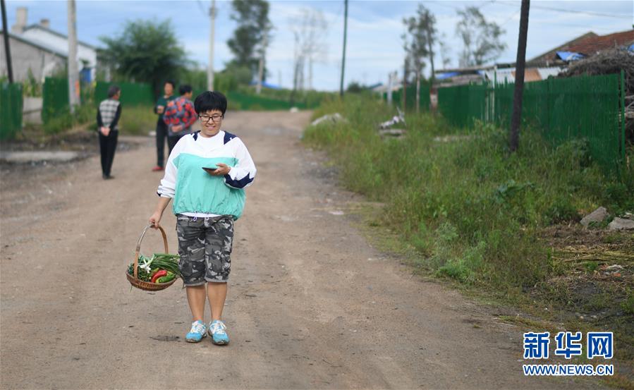 李琛璨走在從興北村老鄉(xiāng)家收蔬菜返回的路上(8月30日攝)。 新華社記者 王松 攝