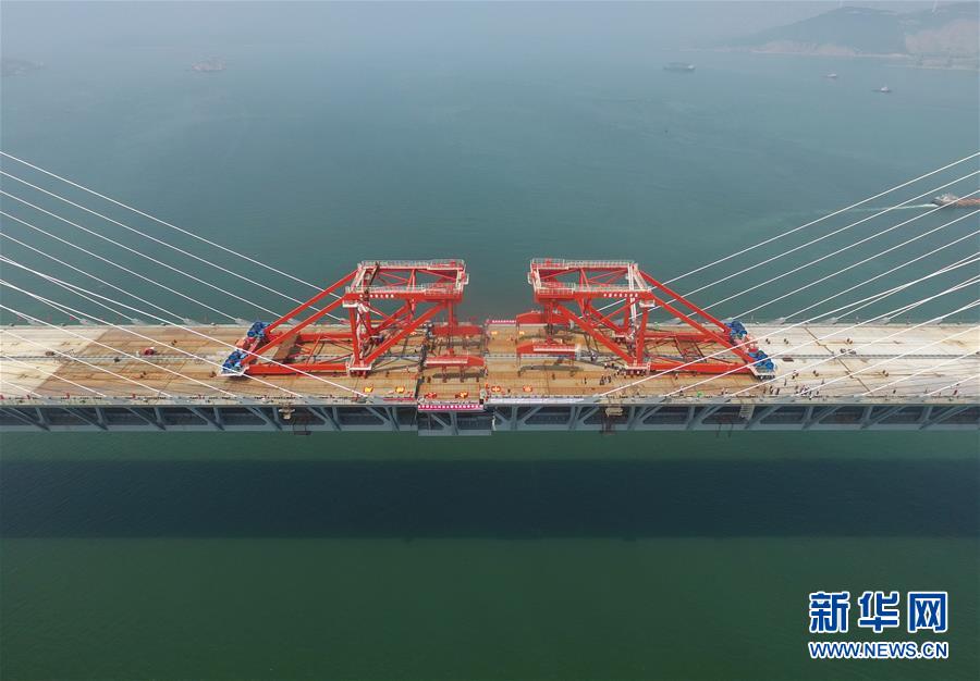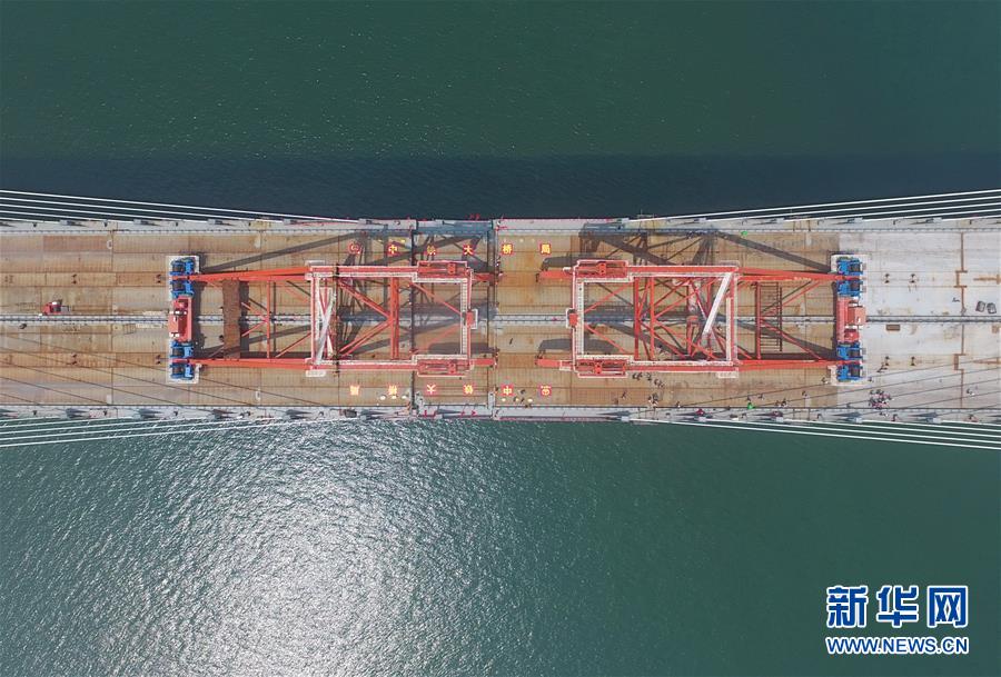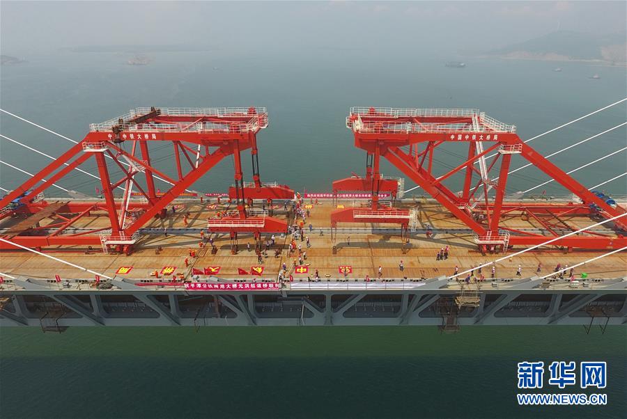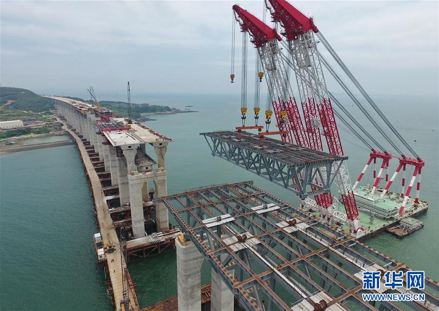 9月21日,平潭海峽公鐵大橋鼓嶼門航道橋的鋼桁梁在吊裝中(無(wú)人機(jī)拍攝)。9月25日上午,隨著一段長(zhǎng)17米、重473噸的鋼桁梁被精確固定到位,總長(zhǎng)16.34公里的平潭海峽公鐵大橋合龍貫通。平潭海峽公鐵大橋是福州至平潭鐵路控制性工程,也是“十三五”規(guī)劃中北京至臺(tái)灣高鐵的先期工程。大橋起于福州市長(zhǎng)樂(lè)區(qū),“踏”過(guò)四座小島后抵達(dá)中國(guó)第五大島平潭,上層設(shè)計(jì)為時(shí)速100公里的六車道高速公路,下層為設(shè)計(jì)時(shí)速200公里的高鐵。據(jù)福建福平鐵路公司介紹,大橋計(jì)劃2020年正式通車。在六年建設(shè)過(guò)程中,平潭海峽公鐵大橋所應(yīng)用研發(fā)的多項(xiàng)技術(shù)、裝備創(chuàng)下國(guó)內(nèi)外紀(jì)錄。新華社記者林善傳攝