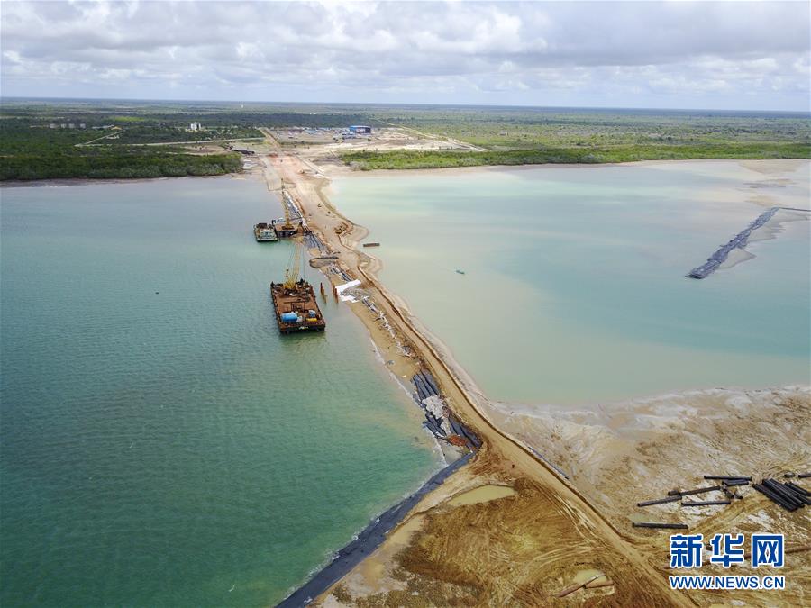 這是2017年5月10日在肯尼亞東北部曼達(dá)灣海域拍攝的拉穆港項(xiàng)目的引堤,引堤將大陸與人造陸地連在一起。2012年3月,肯尼亞聯(lián)合南蘇丹和埃塞俄比亞啟動(dòng)了“拉穆港-南蘇丹-埃塞俄比亞交通走廊”項(xiàng)目。項(xiàng)目包括鐵路、公路和石油管線等諸多組成部分,總投資額約250億美元。同年,中國交建從17家通過資格預(yù)審的國際公司中脫穎而出,獲得拉穆港項(xiàng)目的承建權(quán)。新華社記者潘思危攝
