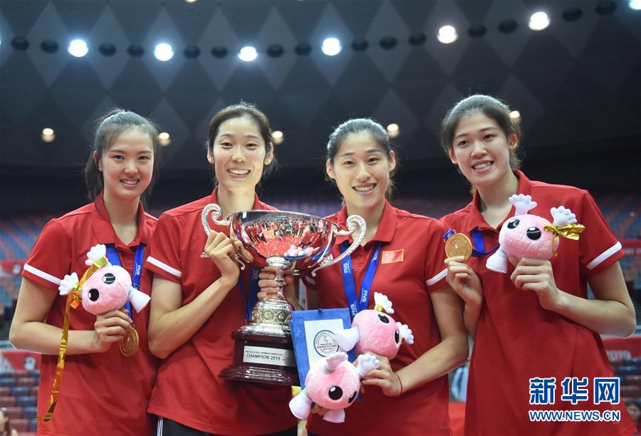 當日,2019年女排世界杯賽頒獎儀式在日本大阪舉行,中國隊在本屆比賽中以十一連勝的戰(zhàn)績奪得了冠軍。