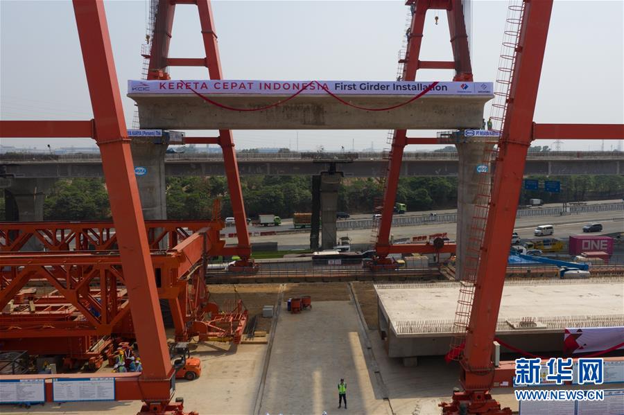 9月30日,雅萬高鐵全線首榀箱梁成功架設。(無人機拍攝) 印度尼西亞雅萬高鐵全線首榀箱梁9月30日架設成功,高鐵建設繼續(xù)穩(wěn)步推進。雅萬高鐵全長142公里,最高設計時速350公里,2018年6月全面開工,總工期為36個月,今年是施工建設全面提速的關鍵年。建成通車后,雅加達至萬隆的時間將由現(xiàn)在的3個多小時縮短至40分鐘。 新華社記者 杜宇 攝