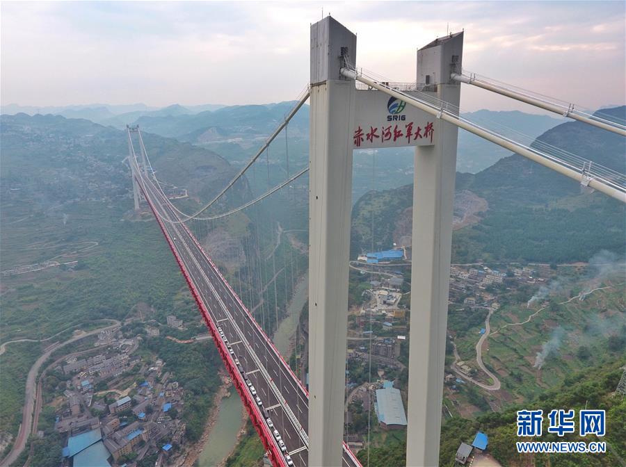 9月30日無人機拍攝的赤水河紅軍大橋。新華社記者劉坤攝