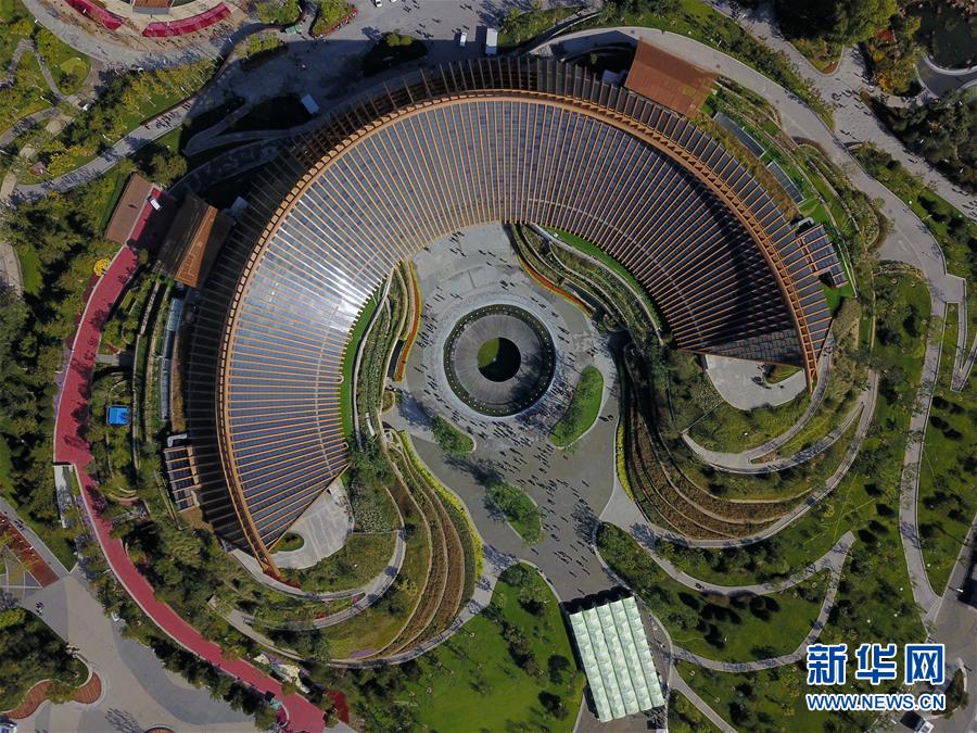 北京世園會國際館(10月6日無人機(jī)拍攝)。新華社記者張晨霖?cái)z