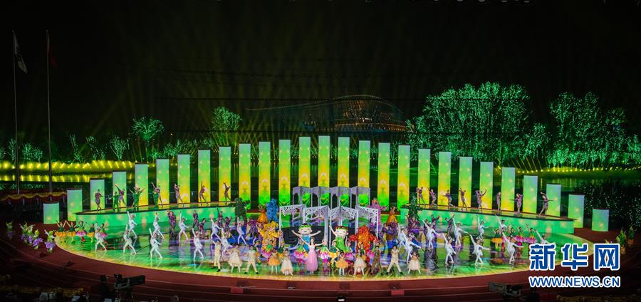10月9日,演員在節(jié)目“綠野漫游”中表演。當日,2019年中國北京世界園藝博覽會閉幕式在北京舉行。新華社記者翟健嵐攝