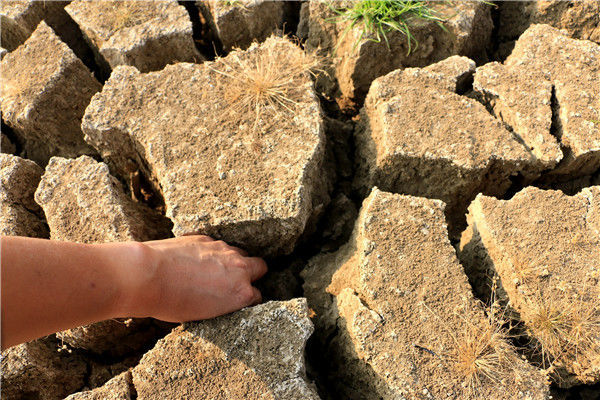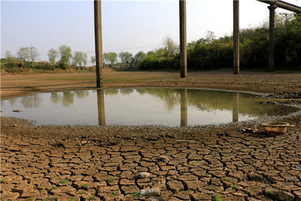 當(dāng)?shù)貢r(shí)間2016年5月13日,柬埔寨甘丹省,受厄爾尼諾現(xiàn)象影響,當(dāng)?shù)卦庥龈珊堤鞖?,池塘干涸開裂。