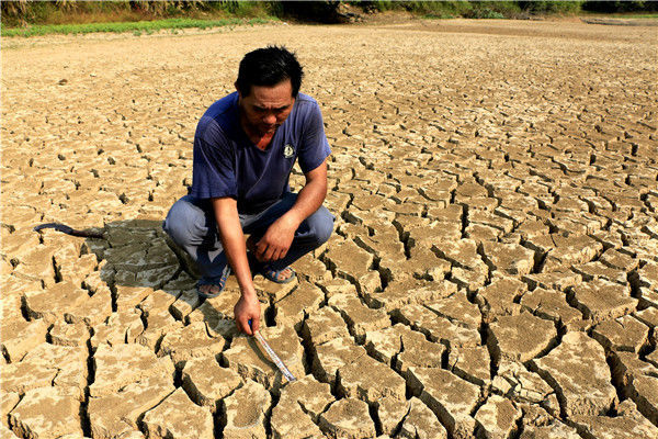 2019年10月4日,江西彭澤縣黃嶺鄉(xiāng)芳湖村,池塘干枯見(jiàn)底。圖為曾經(jīng)水草豐盈的池塘已經(jīng)缺水干枯。