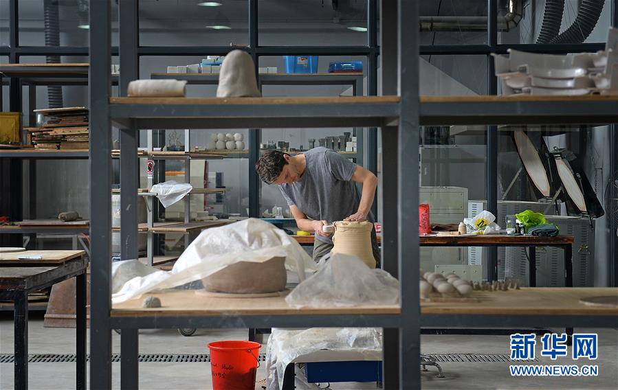 在江西景德鎮(zhèn)陶溪川國際工作室,一名來自美國的藝術家在制作陶瓷藝術品(2016年10月20日攝)。新華社記者 萬象 攝