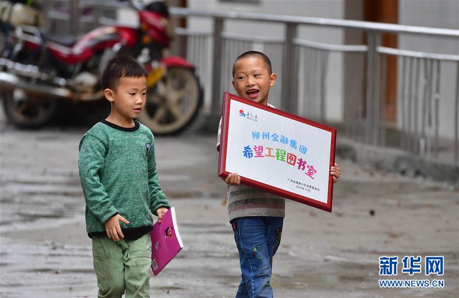 黔桂烏英苗寨的孩子們在閱讀剛剛獲贈的圖書(10月11日攝)。