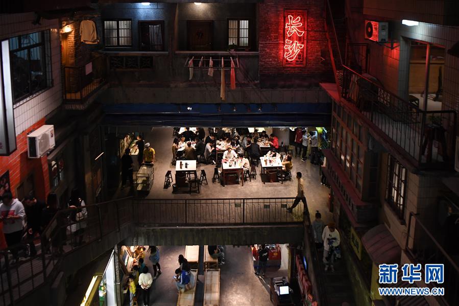 10月12日,食客們在一家將老長沙市井文化概念與餐飲結合的“網(wǎng)紅”餐館內用餐。