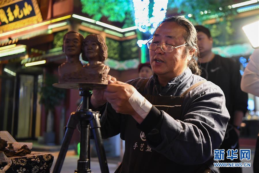 10月12日,長沙火宮殿內(nèi)一名泥塑手藝人在為顧客捏塑像。新華社記者薛宇舸攝