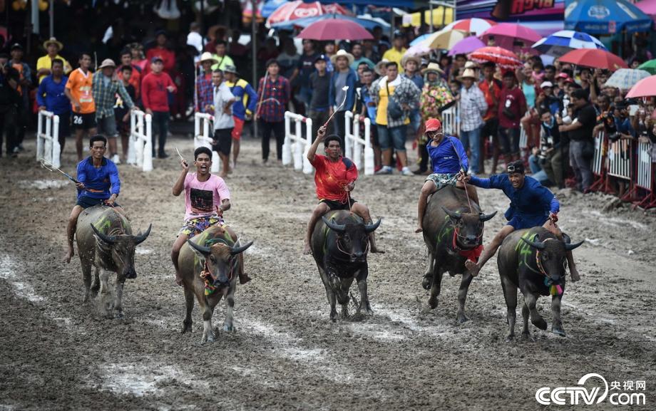 央視網(wǎng)消息:當?shù)貢r間2019年10月12日,泰國春武里舉行一年一度的水牛賽跑,選手騎??癖肌R曈X中國