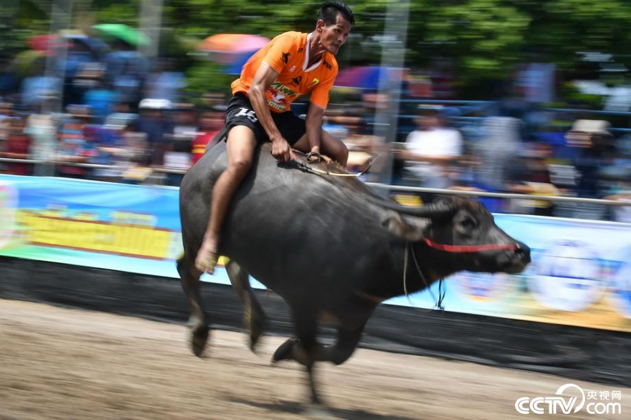 央視網(wǎng)消息:當(dāng)?shù)貢r(shí)間2019年10月12日,泰國春武里舉行一年一度的水牛賽跑,選手騎牛狂奔。視覺中國