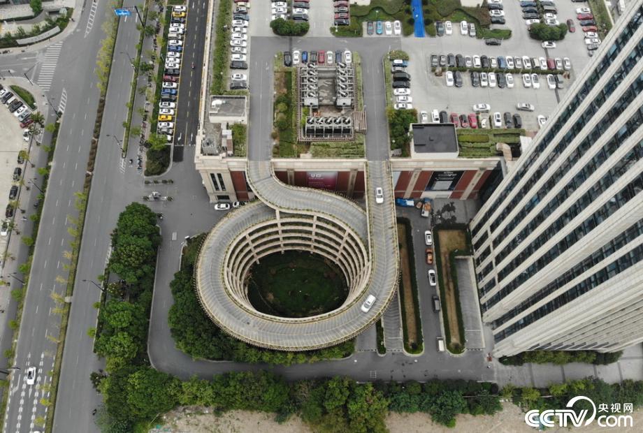 2019年10月13日,從空中航拍杭州一家環(huán)形停車場。近日,位于杭州城北一商場六樓樓頂?shù)耐\噲?,由于停車需要先開車?yán)@行約6圈360度的坡道,才能停放汽車,因而被不少車主譽(yù)為杭州版“3D魔幻”停車場和杭州“最暈”停車場,還被不少網(wǎng)友冠以各種新奇的名稱,從而走紅網(wǎng)絡(luò)和朋友圈,還吸引不少市民特地前來打卡拍攝。視覺中國