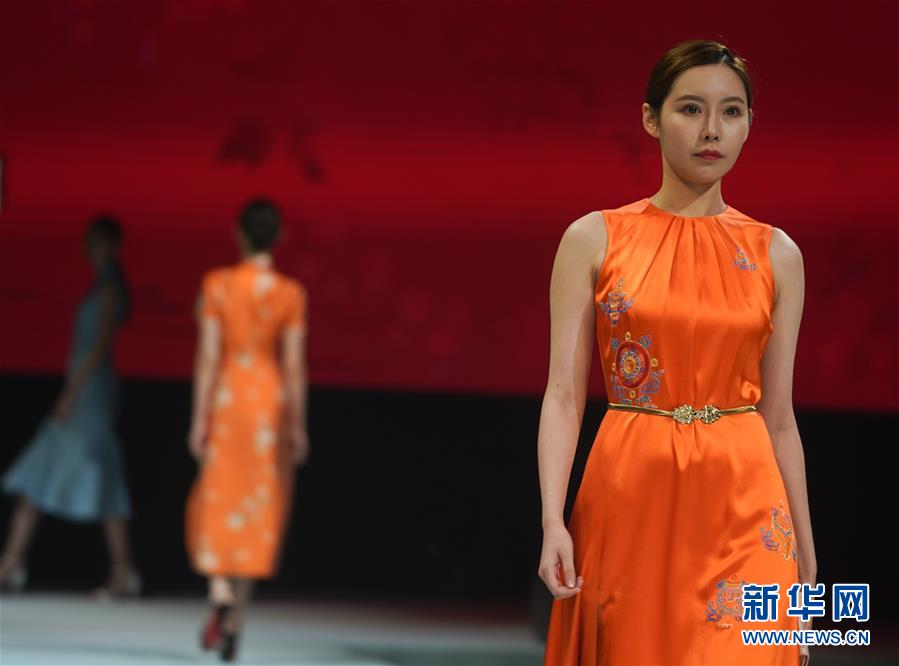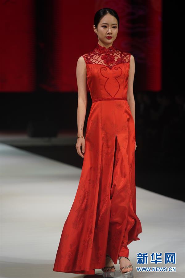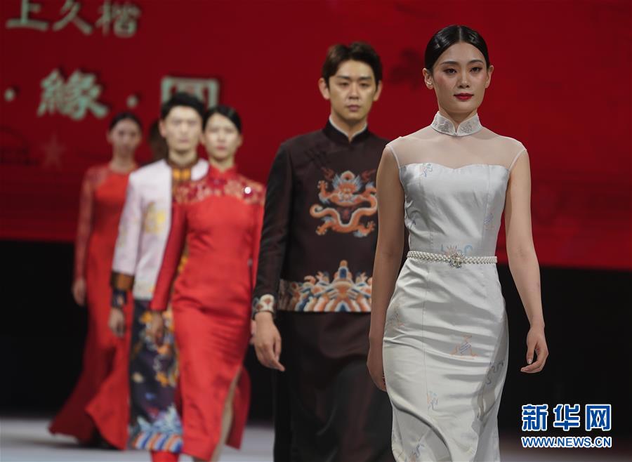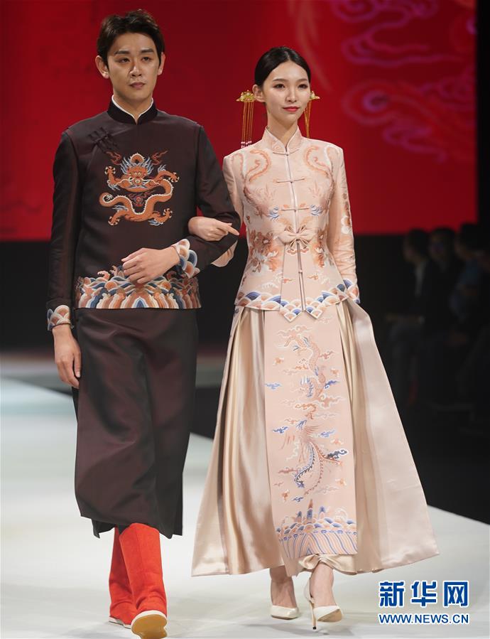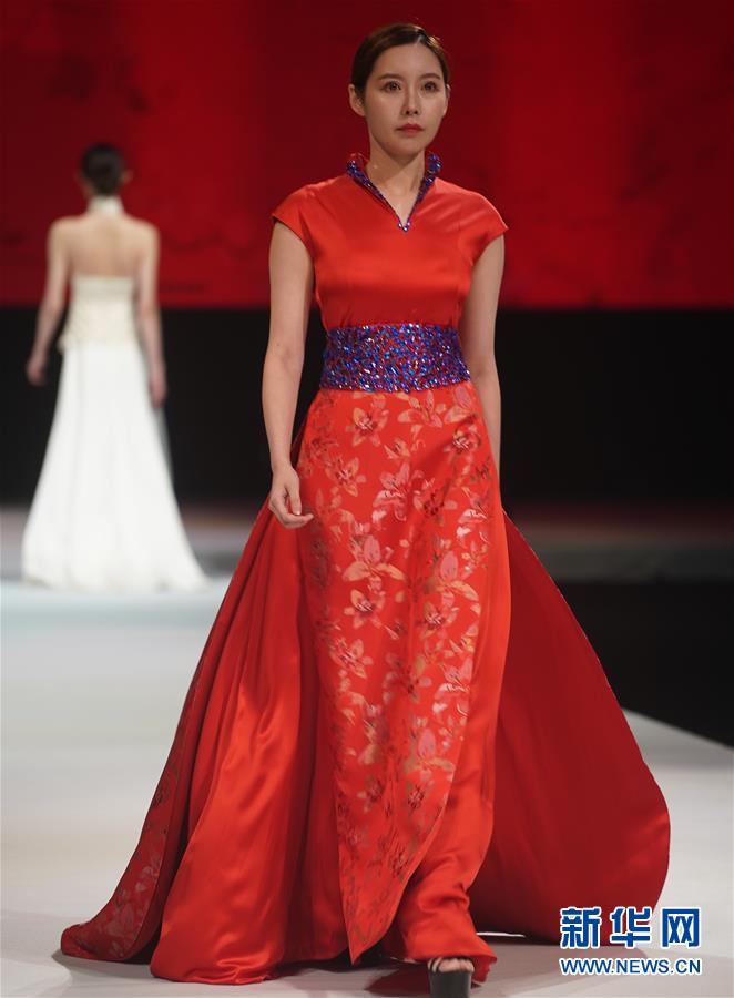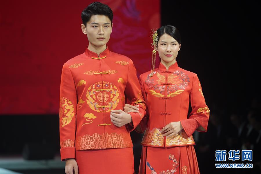 10月16日,“愿·緣·圓”上久楷婚慶主題秀在江蘇省蘇州市吳江區(qū)盛澤鎮(zhèn)舉行。主題秀上展示大量帶有龍鳳、牡丹、海棠、彩蝶等中國傳統(tǒng)文化元素的宋錦中式婚慶禮服。 新華社記者 季春鵬 攝