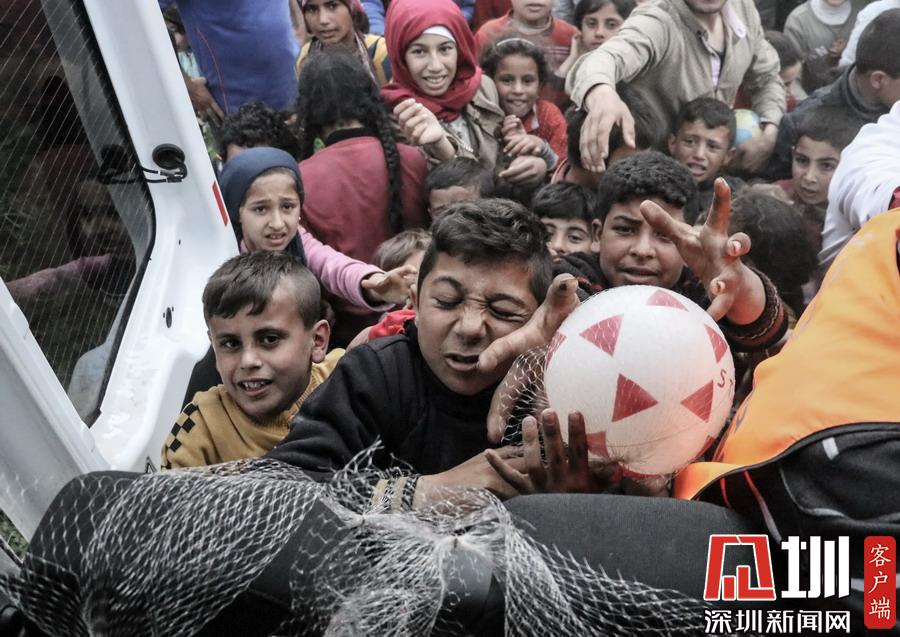 當(dāng)?shù)貢r間2018年3月18日,敘利亞阿勒頗,敘利亞難民領(lǐng)取災(zāi)害和應(yīng)急管理機(jī)構(gòu)提供的糧食救援。1月20日,土耳其發(fā)動針對敘利亞阿夫林地區(qū)庫爾德人的橄欖枝行動,阿勒頗諸多村鎮(zhèn)被清理,當(dāng)?shù)鼐用窦毙枞粘I罹仍?/p>