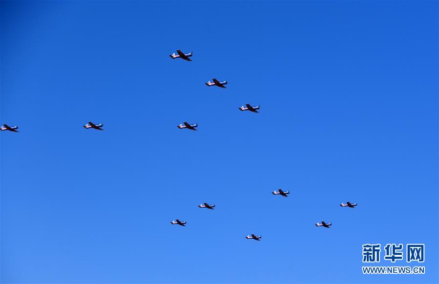 10月17日,“天之翼”飛行表演隊在進行飛行表演。 新華社記者 林宏 攝
