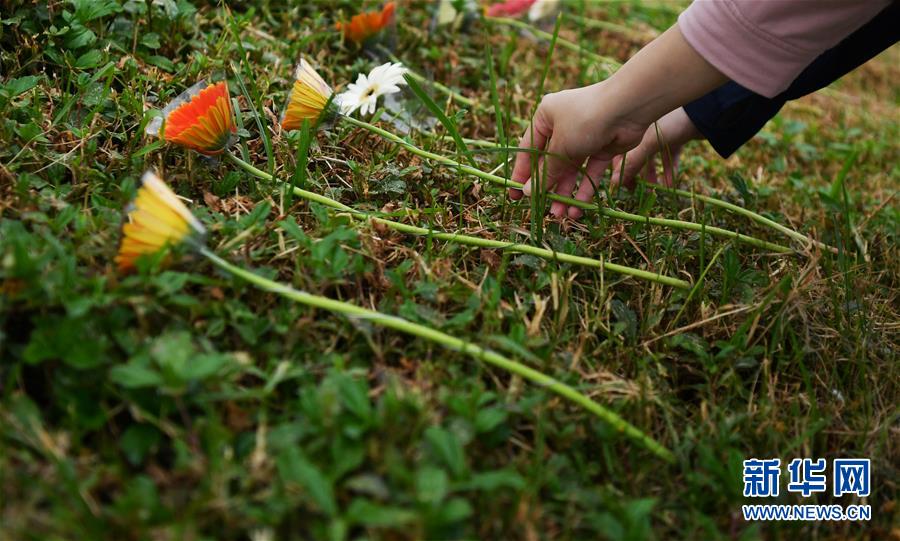 10月19日,參與秋祭活動的民眾在活動現(xiàn)場獻花。 新華社記者 陳斌 攝