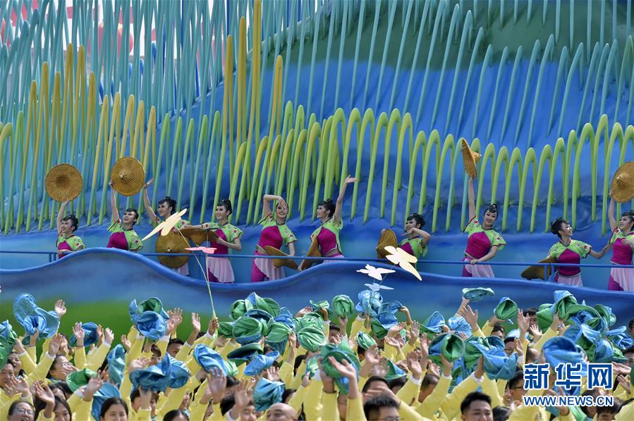 10月1日上午,慶祝中華人民共和國(guó)成立70周年大會(huì)在北京天安門(mén)廣場(chǎng)隆重舉行。這是群眾游行中的“綠水青山”方陣。 新華社記者 周華 攝