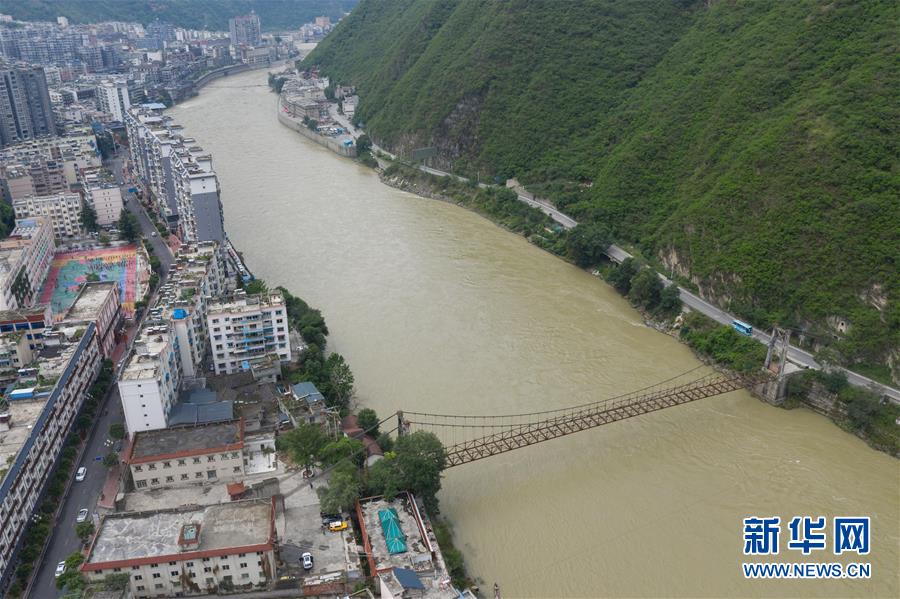 這是大渡河的鋼索汽車吊橋(6月27日)。 新華社記者 江宏景 攝