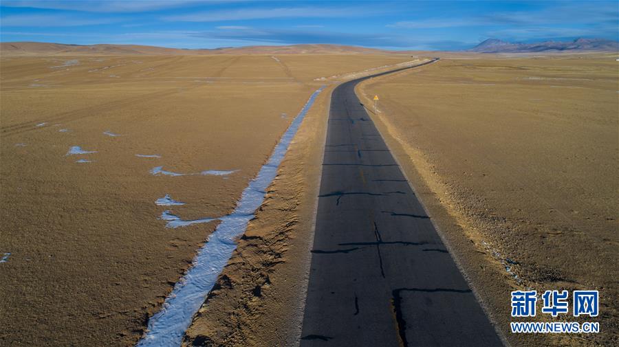 這是通往藏北雙湖縣的公路(1月30日無人機(jī)拍攝)。新華社記者 普布扎西 攝