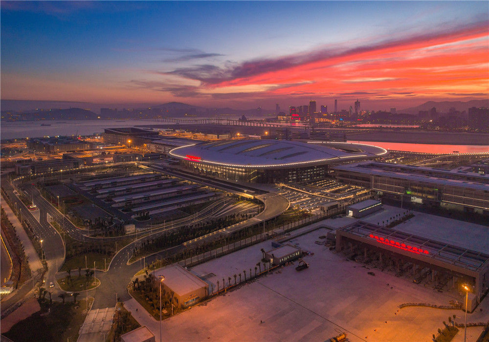晨曦中的港珠澳大橋珠澳口岸人工島(10月24日無人機(jī)拍攝)。2018年10月23日,港珠澳大橋正式開通。在這座圓夢(mèng)橋、同心橋、自信橋、復(fù)興橋開通一周年之際,記者親自體驗(yàn)“一橋連三地、一日游三城”的悠閑與便利,于不同的旖旎風(fēng)光中自在游覽,在不同的城市風(fēng)貌間自如切換。新華社記者張金加攝