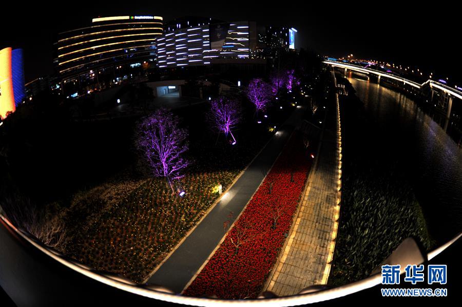 10月25日晚在國(guó)家會(huì)展中心(上海)周邊地區(qū)拍攝的“玉蘭花開(kāi)”燈飾。
