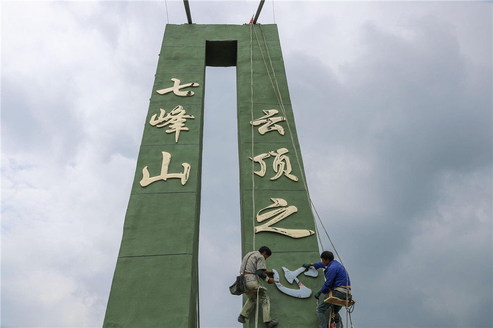2019年9月20日,從落差198米懸崖上伸出周長60米懸空的“高空玻璃懸廊”在河南南陽七峰山落成,該玻璃懸廊名為“云頂之心”。
