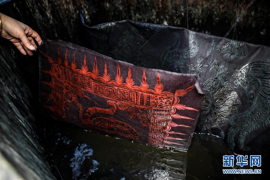 10月28日,楊芳在家中對繪好的蠟畫進(jìn)行染制。新華社記者 歐東衢 攝