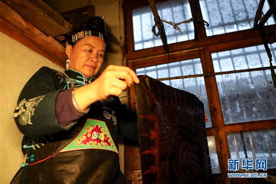 10月28日,楊芳在家中晾曬蠟染制品。新華社記者 歐東衢 攝