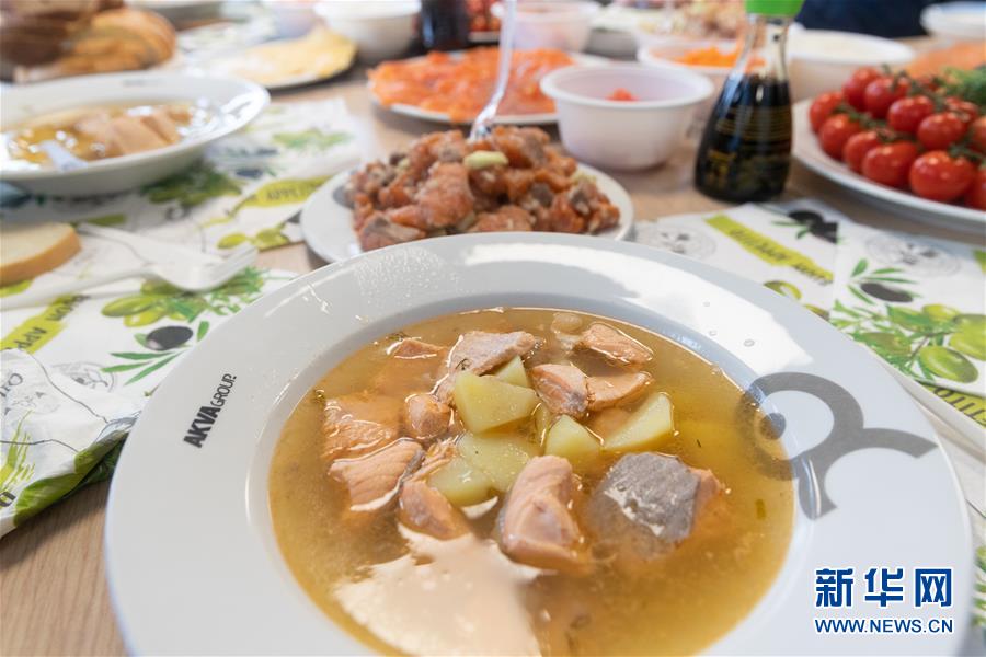 這是9月13日在俄羅斯摩爾曼斯克以北的巴倫支海域的鮭魚養(yǎng)殖場拍攝的鮭魚湯。 新華社記者白雪騏攝